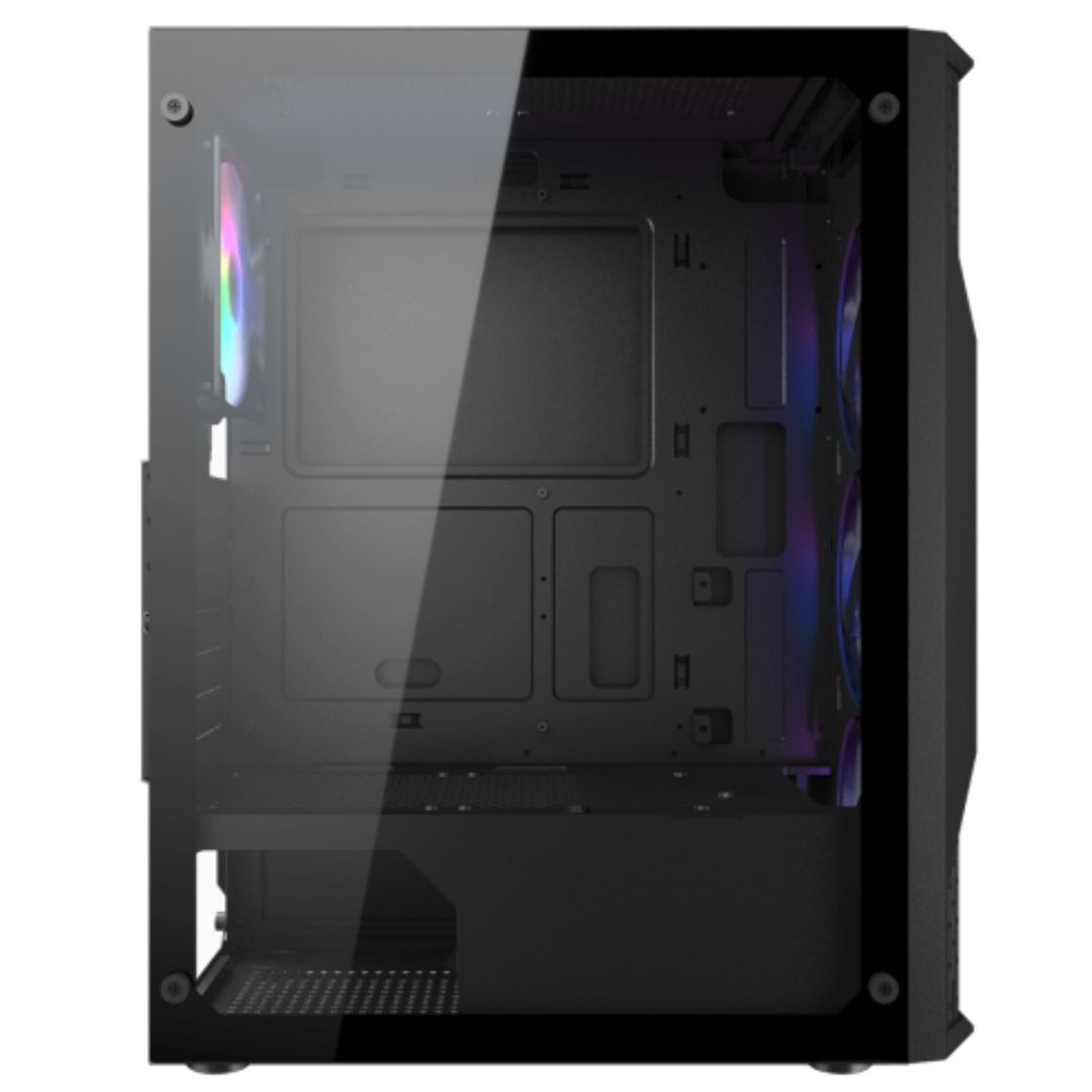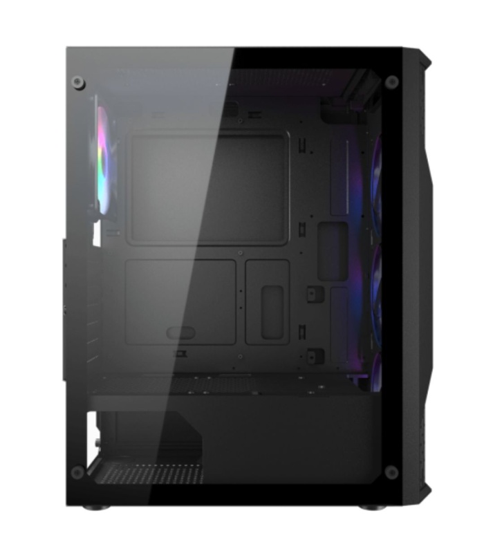 El panel frontal del MX440-G RGB presenta líneas audaces y estructuras resistentes. Es el chasis el que trae el nuevo concepto de fuerza y ​​robustez al mundo de los juegos. Además, el panel frontal de vidrio templado permite que la iluminación interna cree efectos fascinantes.